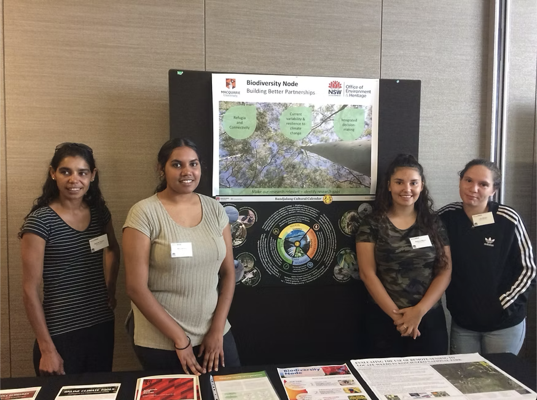 The Bandjalang Cultural Calendar was developed by the Minyumai IPA Women Rangers and our Elders, guided by our traditional knowledge of how natural indicators mark the changing seasons. It shows changes throughout the year, such as migratory birds visiting during summer, many species of wildflowers blossoming during the warm months, bush tucker species that can be harvested at certain times of the year, and changes for species that are important to us such as the Gehrr (glossy black cockatoo, Wijoon (Gliders), Boorubi (Koala), Ngugum (Dingo) . These ‘biocultural indicators’ tell us when the seasons change, when is a good time to burn, and what foods to harvest sustainably.