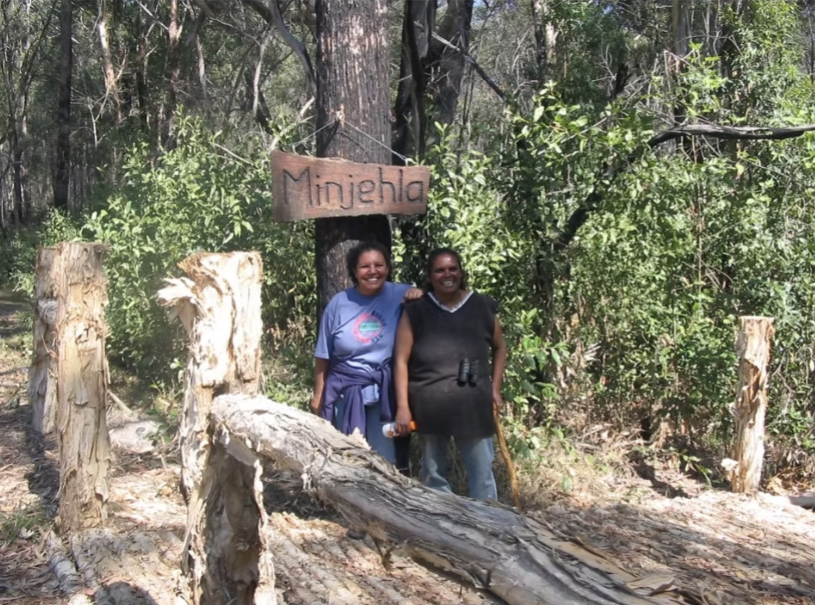 In 2004 the Minjehla education trail was officially opened. Minjehla is a place of high cultural signficance to the Bandjalang people. This image is of Aunty Simone and Aunty Bonnie when the track was opened.